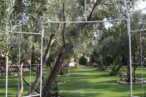 para entre sol y sombra con luminosidad deslumbrante de día y cálida de noche, acoger estancias, reuniones, celebraciones, etc., con aromas románticos a jazmines, lavandas y romeros.